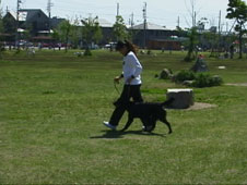 まずは、コンパニオンドックとしてのマナーを勉強です。チェーンのかけ方から始まり、どうすればオーナーの意志をフラットに理解させられるかを学びました。