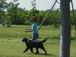 続いて、ハンドリング教室でドックショーの進行についての説明と如何にフラットの能力を引き出せるかを勉強しました。