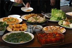 参加メンバー持参の持寄りのランチ。料理自慢、巷の有名料理が盛りだくさんで、最近ではセミナーの楽しみの一つになっています。