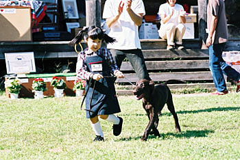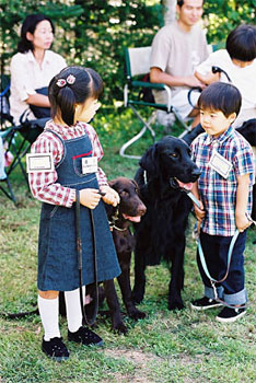 中学生以下を対象にジュニア・ハンドリング・コンペティションを開催しています。本当に可愛いハンドラーから、本格的なハンドラーまで、楽しく、真剣にハンドリングを競っています。 どのフラットもハンドラーと一体となってショーを楽しんでいます。フラットの扱いやすさに、本当に感心する一コマでもあります。 本当に可愛らしいジュニアハンドラー!!