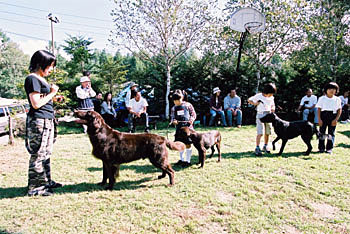 中学生以下を対象にジュニア・ハンドリング・コンペティションを開催しています。本当に可愛いハンドラーから、本格的なハンドラーまで、楽しく、真剣にハンドリングを競っています。 どのフラットもハンドラーと一体となってショーを楽しんでいます。フラットの扱いやすさに、本当に感心する一コマでもあります。