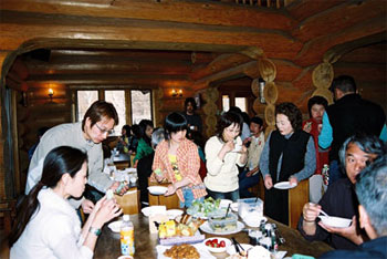 <ShowTR> <Members> <BreakTime> <Other> ランチタイム:今回は参加メンバーの持ち寄った料理をみんなで楽しみました。いろいろな料理を少しずつ食べるのも楽しいですよね! トレーニング、トリミングの後はデザートブレイク!これまた、メンバーが持ち寄ったお手製のお菓子や各地の銘菓をこれまたおいしく頂きました。勿論、フラットに関する話題が飛び交っていました。