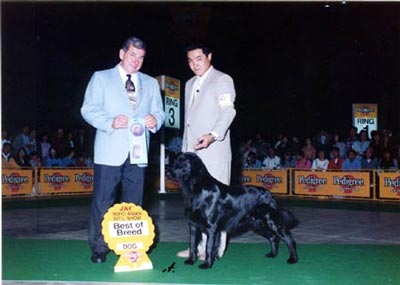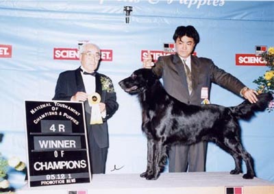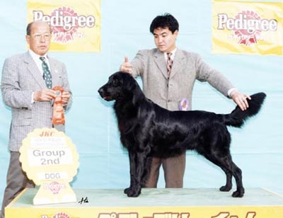 1995FCIアジアインターナショナルドックショーにおいて2年連続でフラットNo.1(オス)を獲得しました。Handler:露木 浩 氏